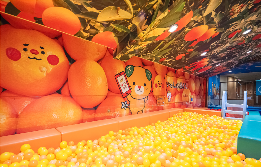 館内でひときわ目を引く、愛媛らしさをぎゅっと詰め込んだ、ボールプール!