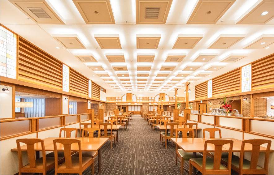 広々とした開放感のあるダイニングで、ゆっくりとお食事をお楽しみください。夕食だけのご利用も可能ですので、お問い合わせください。(事前予約制)