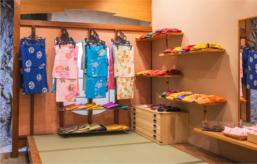 お気に入りのカラフルな色浴衣をレンタルして、レトロな道後の街を彩り豊かに散策!