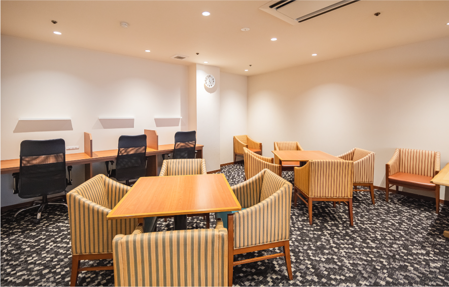 宿泊のお客様は 無料で使えるワークスペース。お仕事や読書、ちょっとした作業も快適に。