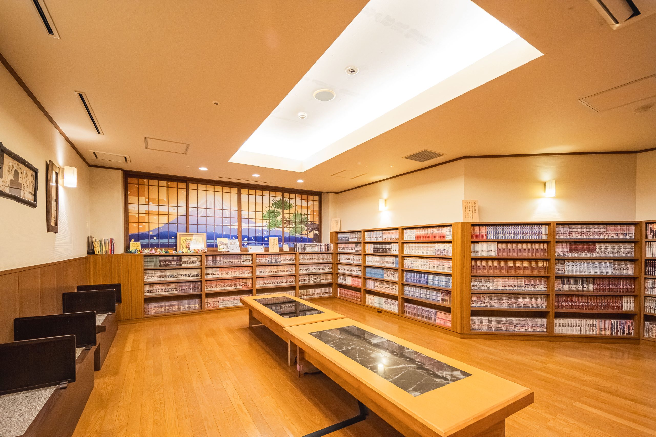 まんが好きにはたまらない!常に5,000冊を取り揃える「まんがコーナー」。 子どもの頃に夢中になった懐かしの作品から、最新ヒット作までジャンルも豊富。岩盤ベンチに座れば、心地よいぬくもりに包まれながら時間を忘れて読みふける贅沢なひとときを楽しめます。