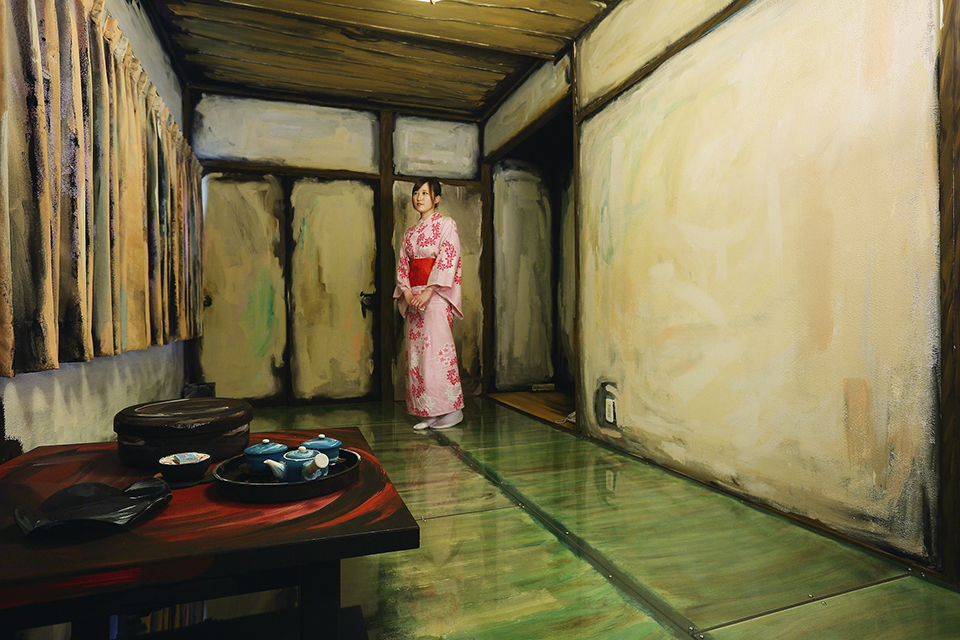 アートルーム「Sketch」(デザイン:谷尻誠)は、畳も襖も壁もすべて絵の具で仕上げられた特別な客室。